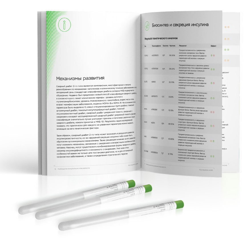 Помогает узнать генетическую предрасположенность к сахарному диабету 2 типа и составить план профилактики.